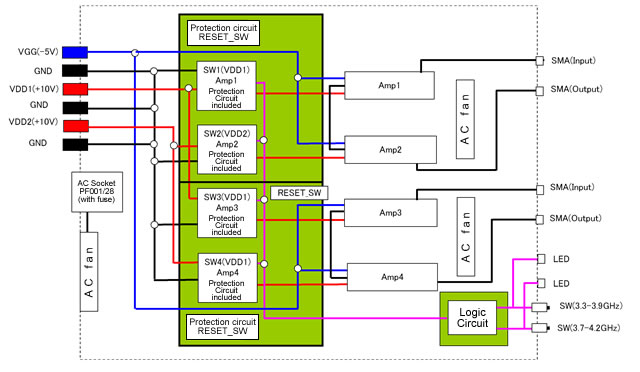 Frequency : f=3.3-3.9GHz/3.7-4.2GHz