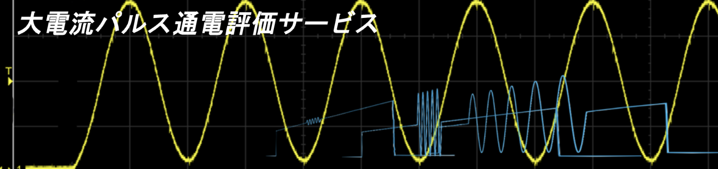 大電流パルス通電評価サービスでは、矩形波や正弦半波といった任意形状の大電流パルスを試料に印加し、試料の破壊耐量などを評価します。