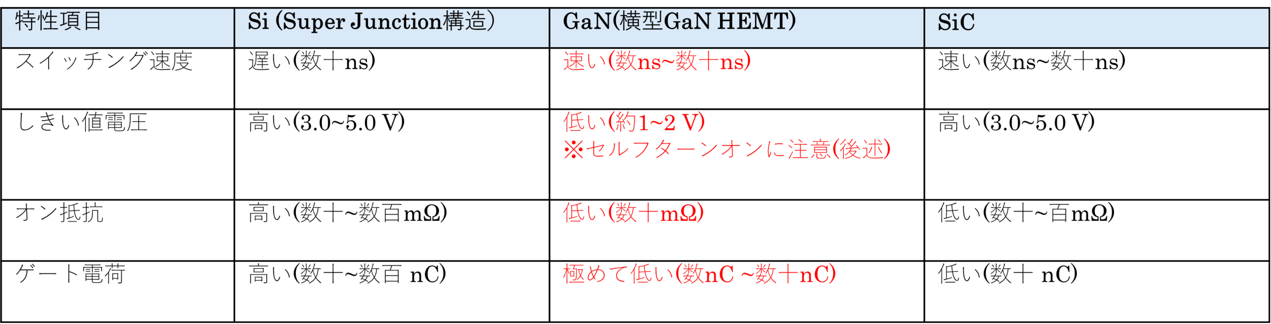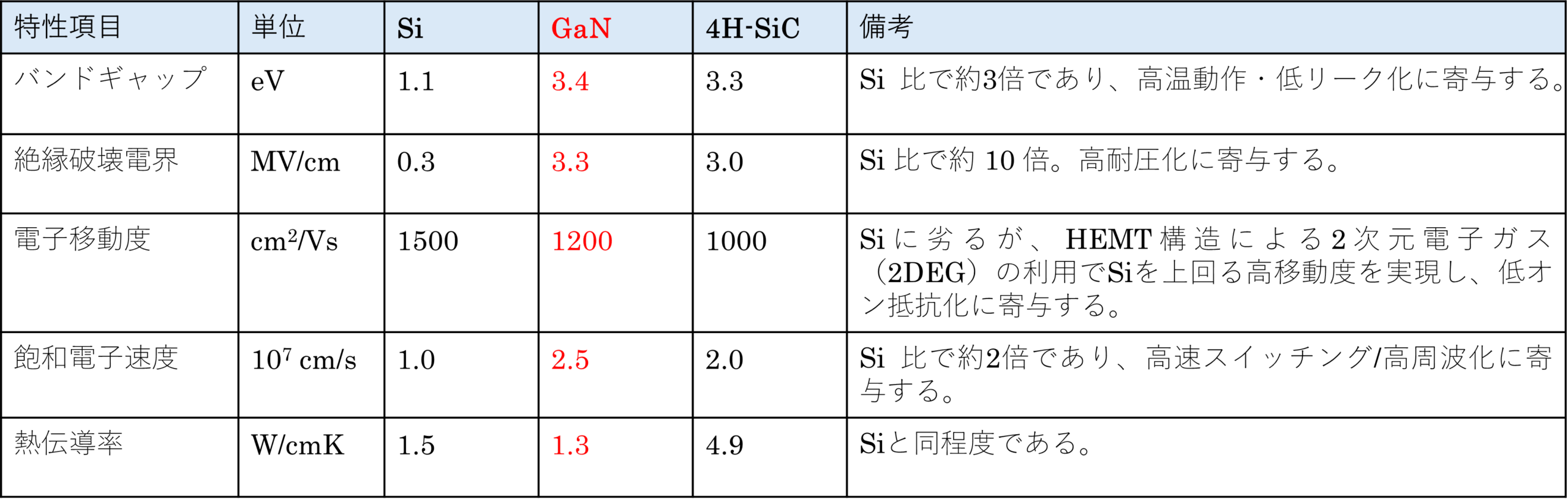 GaNパワーデバイスの物性面の特長・メリット