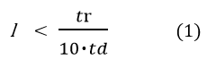デジタル信号波形を解析する場合、集中定数モデルか分布定数モデルかの選択は、信号パルスの立ち上がり時間(tr)と配線長(l )の関係から判断します。立ち上がり時間の1/10以下を集中定数モデルで扱える範囲とすると、集中定数モデルの配線長(l )は式(1)となります。