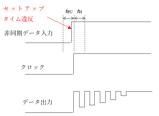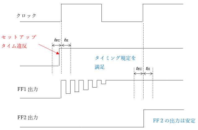 この規定を守れない場合、フリップフロップの出力信号は一定期間発振した状態(メタステーブル)になる可能性があります。