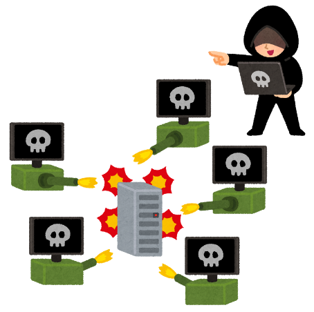 攻撃者とは別の人達が持つ多数のパソコンを踏み台として利用することで、様々な手段で負荷を与えることで攻撃対象のサービスを停止させる「DoS(Denial Of Service)攻撃」を分散(Distributed)して行うもの。分散サービス妨害攻撃とも呼ぶ。
