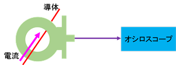 誘起された電圧は電流の時間変化(di/dt)として出力されるため積分器を通すことで比例した電圧が出力されます。その電圧をオシロスコープで測定します。