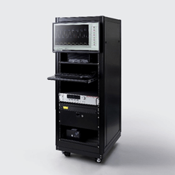 大きな設備のイメージを持たれるかもしれませんが、導通抵抗モニタリングシステムは、19インチ規格のラックに構成機器を組み付けて一体化させた、ハンドメイドの測定環境となっております。