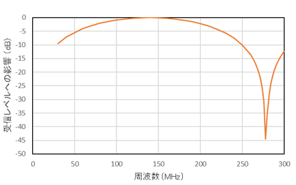 図2の測定配置で、かつ以下の条件に基づいた場合の、アンテナを固定したことによる受信レベルへの影響を図3に示します。
